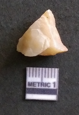 | Description / विवरण | It is a chalcedony flake, with a bulb of percussion on the ventral side. Cortex on one end. |