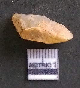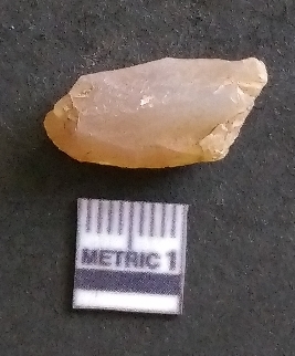 | Description / विवरण | It is a chalcedony flake, with a bulb of percussion on the ventral side. Cortex on one end. |