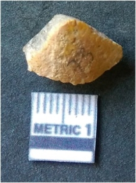 | Description / विवरण | The chalcedony flake is crypto crystalline with sharp flaked edges and nature bulb of percussion. The piece is pale in color with surfacial flake scars. |