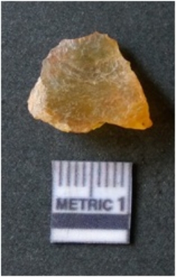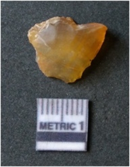 | Description / विवरण | It is chalcedony flake, translucent in appearance. The piece shows sharp pointed ends and flake scars on the surface as a result of flaking. The piece shows a bulb of percussion. |