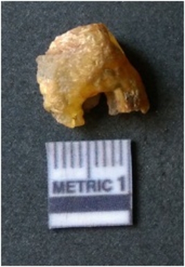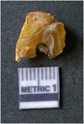 | Description / विवरण | It is chalcedony flake, translucent in appearance. The piece shows sharp pointed ends and flake scars on the surface as a result of flaking. The piece shows a bulb of percussion. |