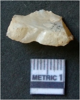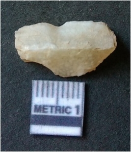 | Description / विवरण | The quartz flake has sharp flaked edges and pointed ends as a result of flaking. The piece is semi-transparent in nature with irregular fracture pattern. The piece is roughly triangular in shape and has a prominent bulb of percussion. |