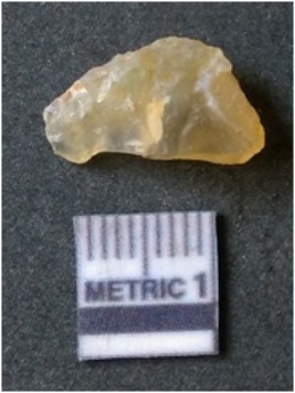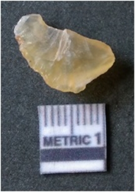| Description / विवरण | It is chalcedony flake, translucent in appearance. The piece shows sharp pointed ends and flake scars on the surface as a result of flaking. The piece shows a bulb of percussion. |