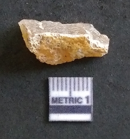 | Description / विवरण | It is a chalcedony flake, with a bulb of percussion on the ventral side. Cortex on one end. |