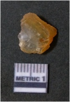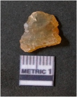 | Description / विवरण | It is chalcedony flake, translucent in appearance. The piece shows sharp pointed ends and flake scars on the surface as a result of flaking. The piece shows a bulb of percussion. |