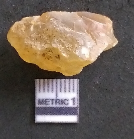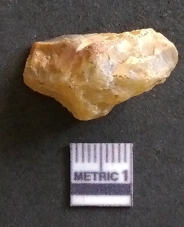 | Description / विवरण | It is a chalcedony flake, with a bulb of percussion on the ventral side. Cortex on one end. |