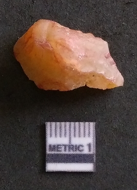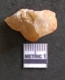 | Description / विवरण | It is a chalcedony flake, with a bulb of percussion on the ventral side. Cortex on one end. |