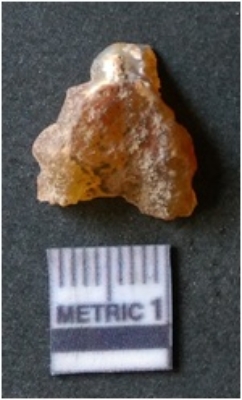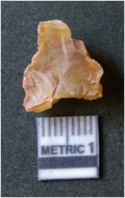 | Description / विवरण | It is chalcedony flake, translucent in appearance. The piece shows sharp pointed ends and flake scars on the surface as a result of flaking. The piece shows a bulb of percussion. |