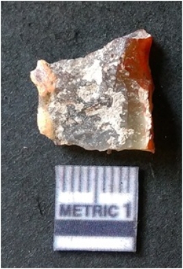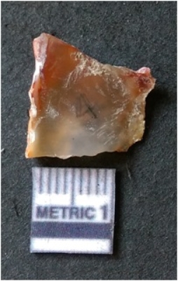 | Description / विवरण | It is chalcedony flake, translucent in appearance. The piece shows sharp pointed ends and flake scars on the surface as a result of flaking. The piece shows a bulb of percussion. |