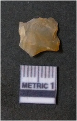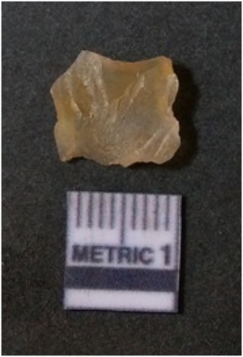 | Description / विवरण | It is chalcedony flake, translucent in appearance. The piece shows sharp pointed ends and flake scars on the surface as a result of flaking. The piece shows a bulb of percussion. |