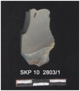 | Description / विवरण | It is a fragment of chert. The striking platform and bulb of percussion can be seen. |