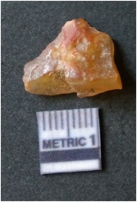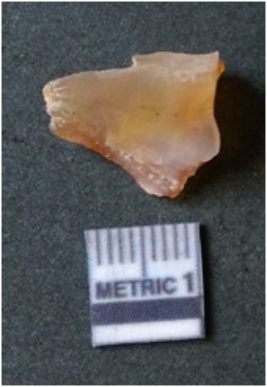 | Description / विवरण | It is chalcedony flake, translucent in appearance. The piece shows sharp pointed ends and flake scars on the surface as a result of flaking. The piece shows a bulb of percussion. |