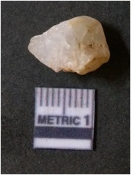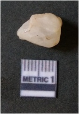 | Description / विवरण | The quartz flake has sharp flaked edges and pointed ends as a result of flaking. The piece is semi-transparent in nature with irregular fracture pattern. The piece is roughly triangular in shape and has a prominent bulb of percussion. |