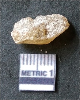 | Description / विवरण | It is chalcedony flake, translucent in appearance. The piece shows sharp pointed ends and flake scars on the surface as a result of flaking. The piece shows a bulb of percussion. |