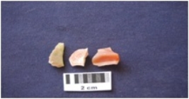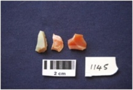 | Description / विवरण | Total No. of debitage 3. Fragments of flakes, byproduct of stone tool manufacturing, made on Chert, prepared platform, bulb absent on ventral side. |