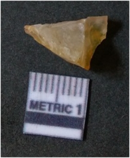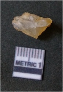 | Description / विवरण | It is chalcedony flake, translucent in appearance. The piece shows sharp pointed ends and flake scars on the surface as a result of flaking. The piece shows a bulb of percussion. |