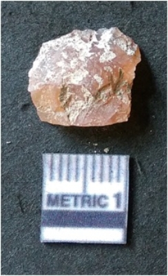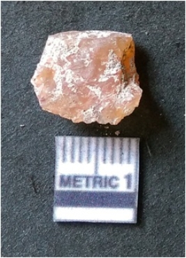 | Description / विवरण | It is chalcedony flake, translucent in appearance. The piece shows sharp pointed ends and flake scars on the surface as a result of flaking. The piece shows a bulb of percussion. |