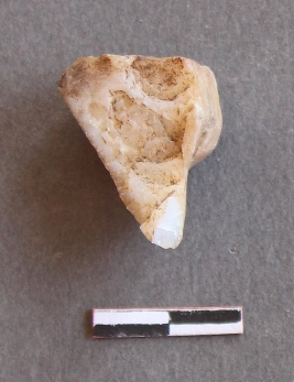 | Description / विवरण | Quartz, possibly milky quartz with cortex covered on all three sides except one with cut edges. |