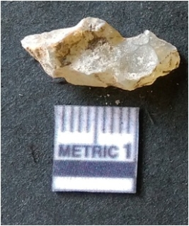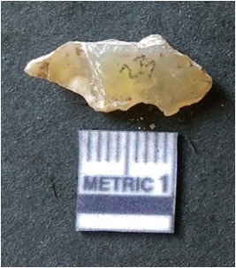 | Description / विवरण | It is chalcedony flake, translucent in appearance. The piece shows sharp pointed ends and flake scars on the surface as a result of flaking. The piece shows a bulb of percussion. |