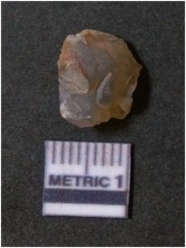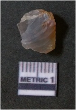| Description / विवरण | The agate piece is translucent in appurtenance, with angular flaked edges and a bulb of percussion. The piece shows flake scars on the surface. |