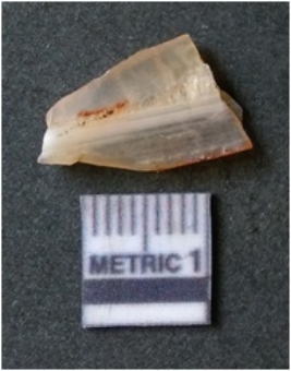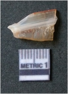 | Description / विवरण | The banded agate piece is crystalline in nature, with a smooth fracture pattern and visible bands on the flaked sides. The piece is pale in color and has sharp flaked ends. |