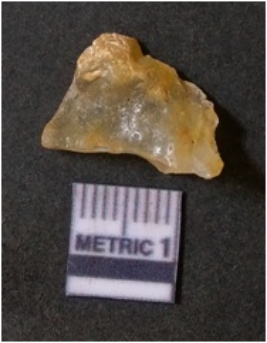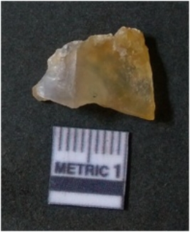 | Description / विवरण | It is chalcedony flake, translucent in appearance. The piece shows sharp pointed ends and flake scars on the surface as a result of flaking. The piece shows a bulb of percussion. |