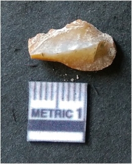 | Description / विवरण | It is chalcedony flake, translucent in appearance. The piece shows sharp pointed ends and flake scars on the surface as a result of flaking. The piece shows a bulb of percussion. |