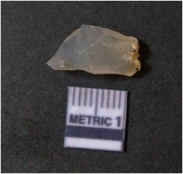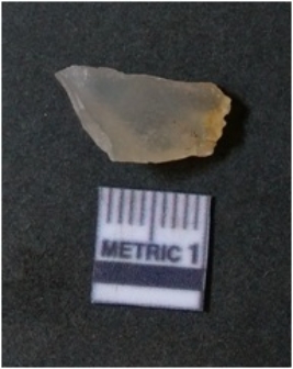 | Description / विवरण | It is chalcedony flake, translucent in appearance. The piece shows sharp pointed ends and flake scars on the surface as a result of flaking. The piece shows a bulb of percussion. |