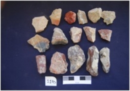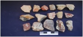 | Description / विवरण | Flakes, byproduct of stone tool manufacturing, made on Chert and Chalcedony, a few flakes with prepared platform whereas a few with narrow platform, partly encrusted on both sides. |