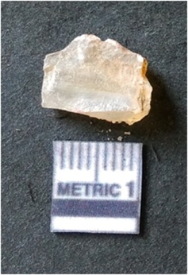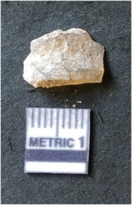 | Description / विवरण | It is chalcedony flake, translucent in appearance. The piece shows sharp pointed ends and flake scars on the surface as a result of flaking. The piece shows a bulb of percussion. |