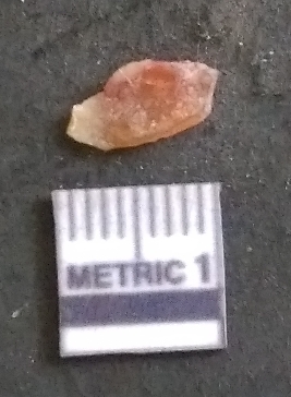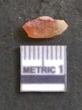 | Description / विवरण | It is a carnelian flake, with a striking platform with bulb of percussion on the ventral side. It is orangish in color, flake edges on the surface with ripple on it due to heavy percussion. |