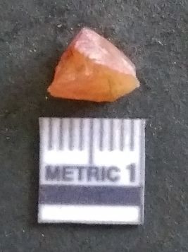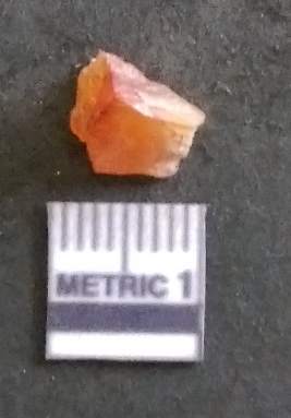 | Description / विवरण | It is a carnelian flake, with a striking platform with bulb of percussion on the ventral side. It is orangish in color, flake edges on the surface with ripple on it due to heavy percussion. |