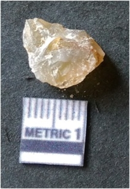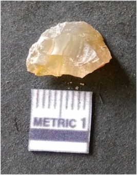 | Description / विवरण | It is chalcedony flake, translucent in appearance. The piece shows sharp pointed ends and flake scars on the surface as a result of flaking. The piece shows a bulb of percussion. |