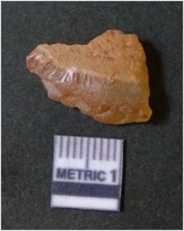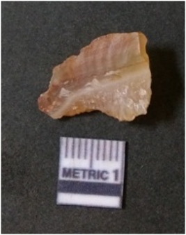 | Description / विवरण | It is chalcedony flake, translucent in appearance. The piece shows sharp pointed ends and flake scars on the surface as a result of flaking. The piece shows a bulb of percussion. |