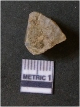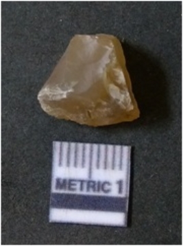 | Description / विवरण | The flake has irregular fracture pattern and sharp flaked edges as a result of lithic knapping activity. The piece is pale, with surfacial flake scars and a bulbous end. The flake is of smoky quartz variety, grayish in colour and translucent in appearance. |