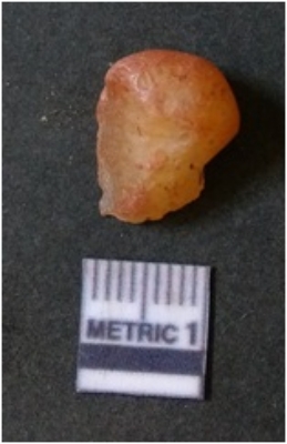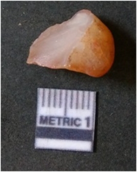 | Description / विवरण | The quartz flake has sharp flaked edges and pointed ends as a result of flaking. The piece is semi-transparent in nature with irregular fracture pattern. The piece is roughly triangular in shape and has a prominent bulb of percussion. |
