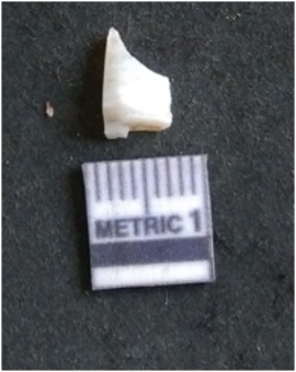 | Description / विवरण | The quartz flake has sharp flaked edges and pointed ends as a result of flaking. The piece is semi-transparent in nature with irregular fracture pattern. The piece is roughly triangular in shape and has a prominent bulb of percussion. |