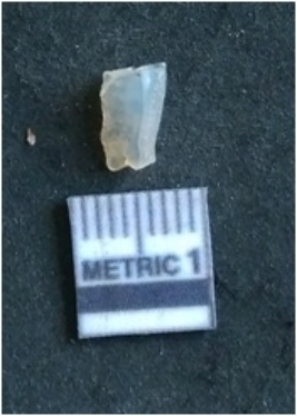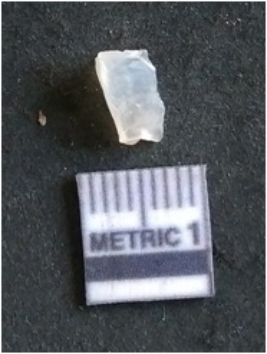 | Description / विवरण | The quartz flake has sharp flaked edges and pointed ends as a result of flaking. The piece is semi-transparent in nature with irregular fracture pattern. The piece is roughly triangular in shape and has a prominent bulb of percussion. |