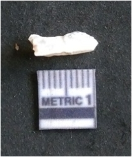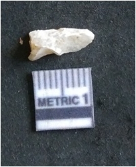 | Description / विवरण | The quartz flake has sharp flaked edges and pointed ends as a result of flaking. The piece is semi-transparent in nature with irregular fracture pattern. The piece is roughly triangular in shape and has a prominent bulb of percussion. |