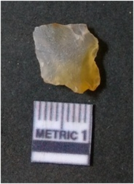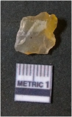 | Description / विवरण | It is chalcedony flake, translucent in appearance. The piece shows sharp pointed ends and flake scars on the surface as a result of flaking. The piece shows a bulb of percussion. |
