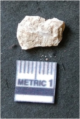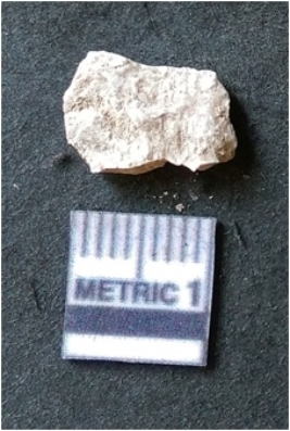 | Description / विवरण | The flake has irregular fracture pattern and sharp flaked edges as a result of lithic knapping activity. The piece is pale, with surfacial flake scars and a bulbous end. The quartz flake is glassy, and transparent. |