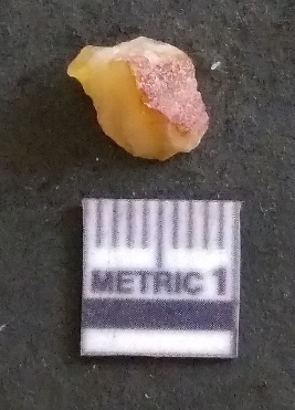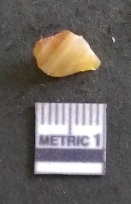 | Description / विवरण | It is a chalcedony flake, with a bulb of percussion on the ventral side. Cortex on one end. |