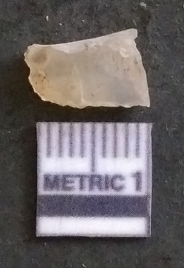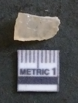 | Description / विवरण | It is a chalcedony flake, with a bulb of percussion on the ventral side. Cortex on one end. |