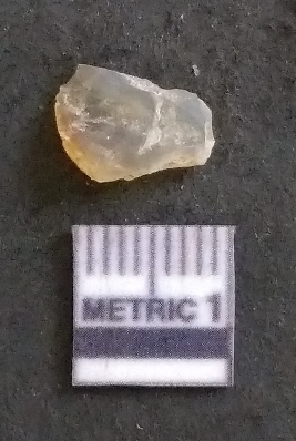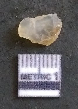 | Description / विवरण | It is a chalcedony flake, with a bulb of percussion on the ventral side. Cortex on one end. |