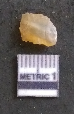| Description / विवरण | It is a chalcedony flake, with a bulb of percussion on the ventral side. Cortex on one end. |