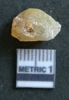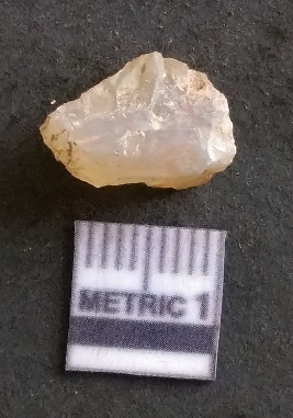 | Description / विवरण | It is a chalcedony flake, with a bulb of percussion on the ventral side. Cortex on one end. |