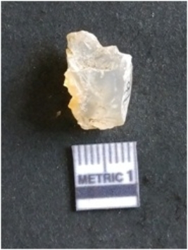 | Description / विवरण | The milky quartz flake has irregular fracture pattern and sharp flaked edges as a result of lithic knapping activity. The piece is pale, with surfacial flake scars and a bulbous end. The flake is white in color. |