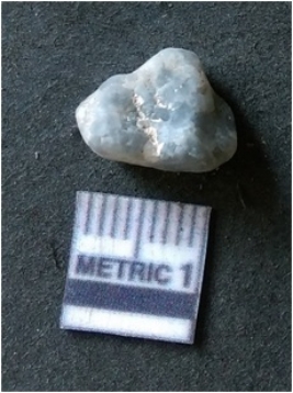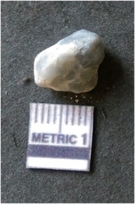 | Description / विवरण | The flake piece is rounded with crypto crystalline matrix and translucent appearance. Flake scars are hardly visible, but it is a part of secondary bi-product of lithic debitage. |
