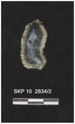 | Description / विवरण | Lithic debitage on agate, the ridges and the bands can be clearly seen. |