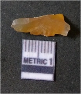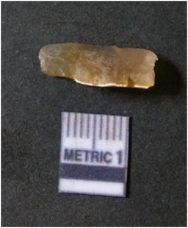 | Description / विवरण | It is chalcedony flake, translucent in appearance. The piece shows sharp pointed ends and flake scars on the surface as a result of flaking. The piece shows a bulb of percussion. |